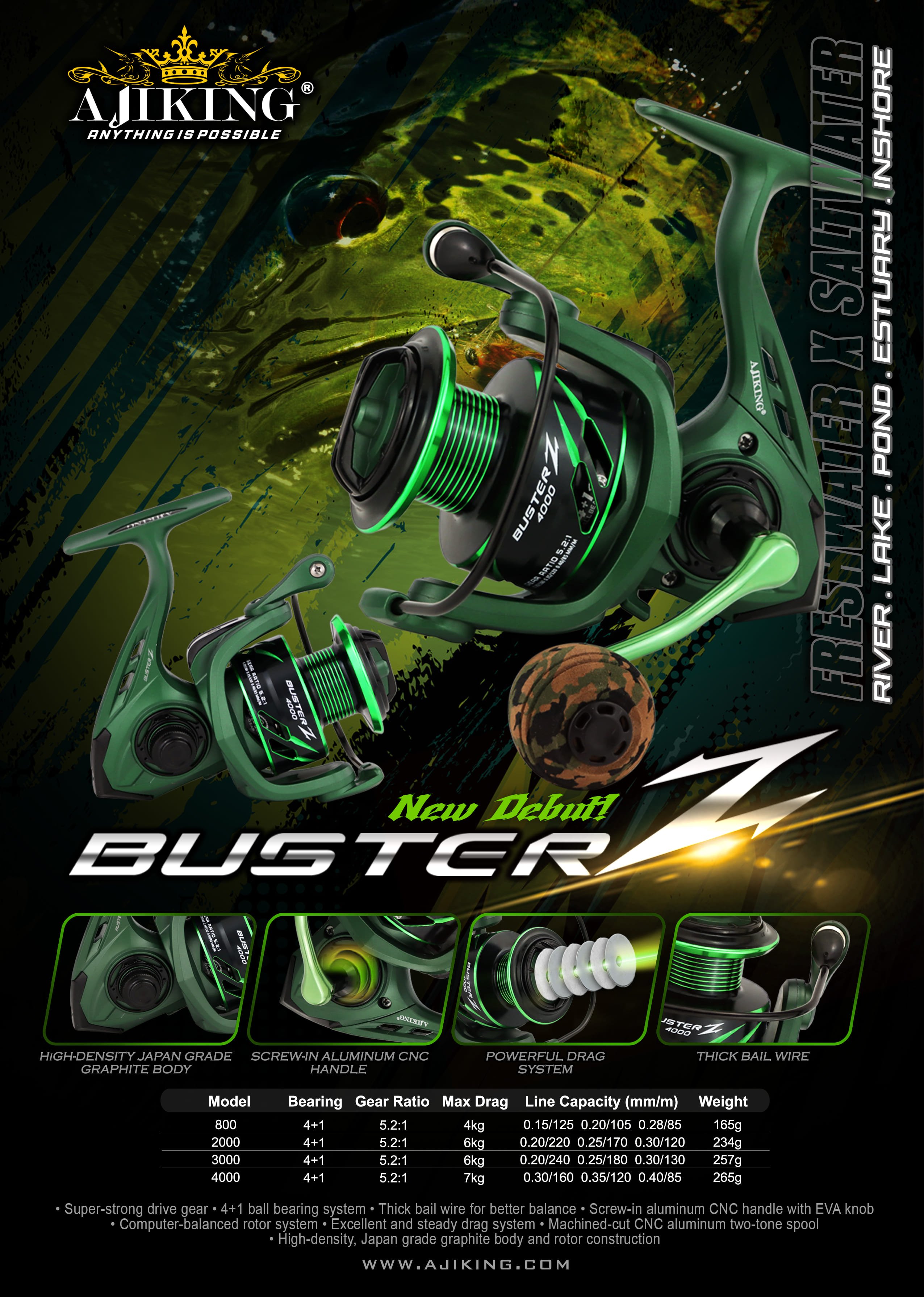 AJIKING REEL – BUSTER Z #BZ (4+1BB) SCREW IN HANDLE