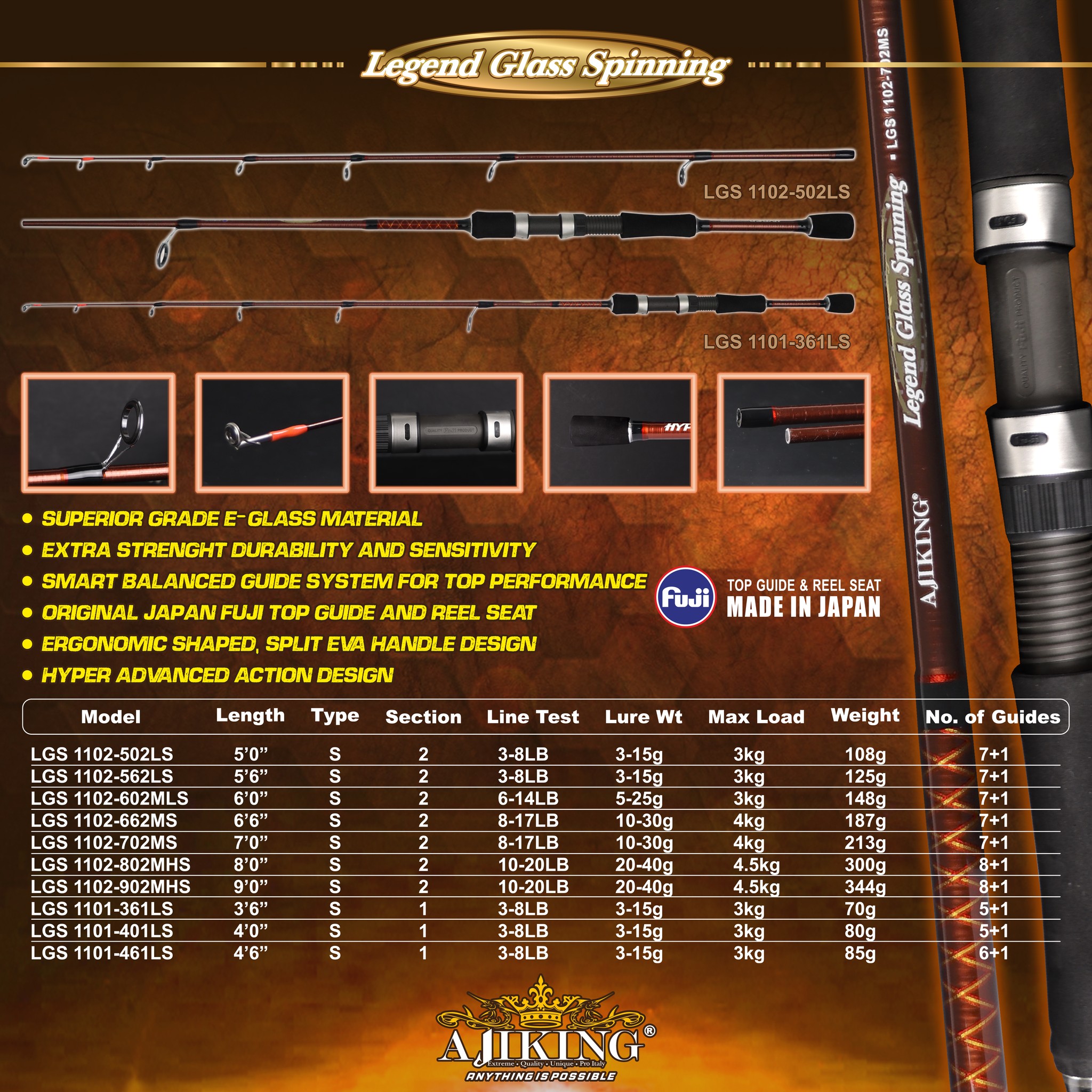 AJIKING ROD – LEGEND GLASS SPINNING #LGS
