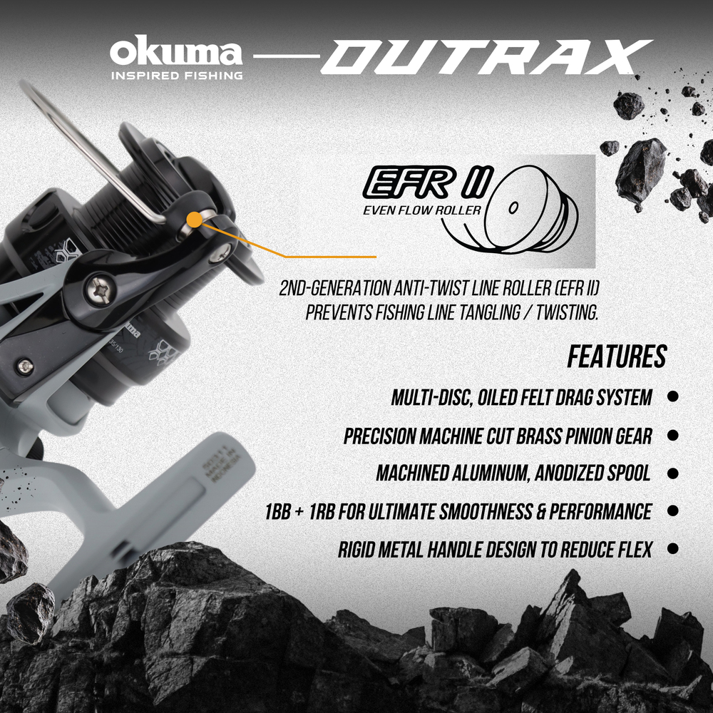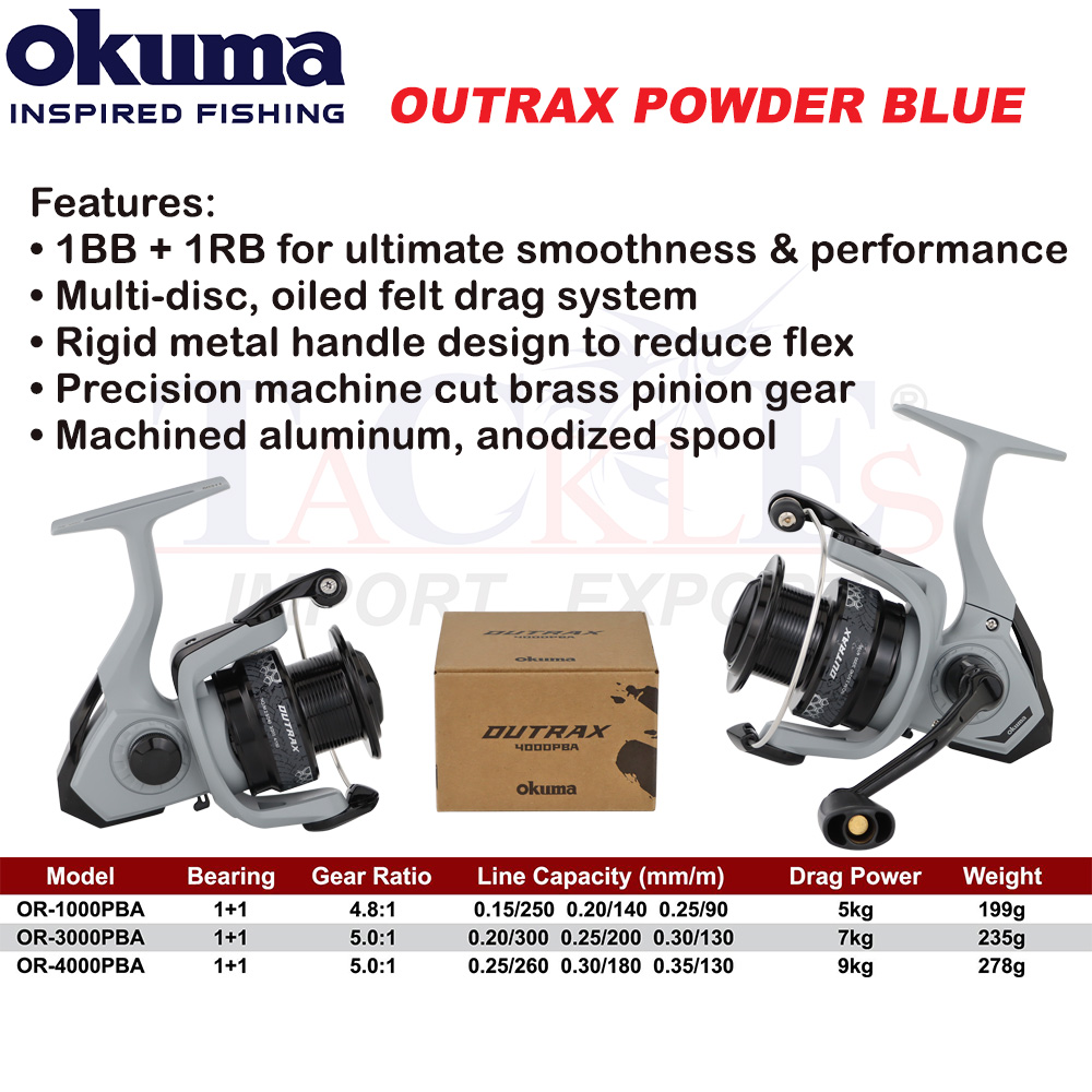 Nikmati prestasi pancingan yang lancar dan tahan lasak dengan OKUMA OUTRAX Powder Blue. Direka untuk pemancing yang inginkan kekuatan, kelancaran dan ketepatan dalam setiap balingan.